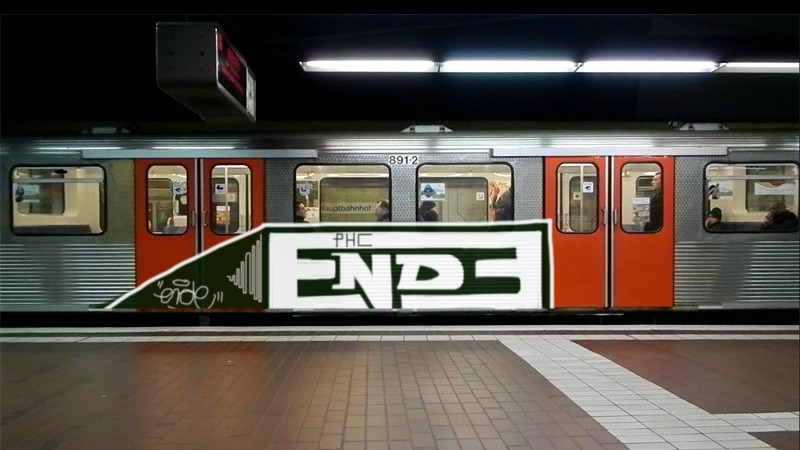 „spray can "bottom-view" is eating the cap himself in the letter "o"“